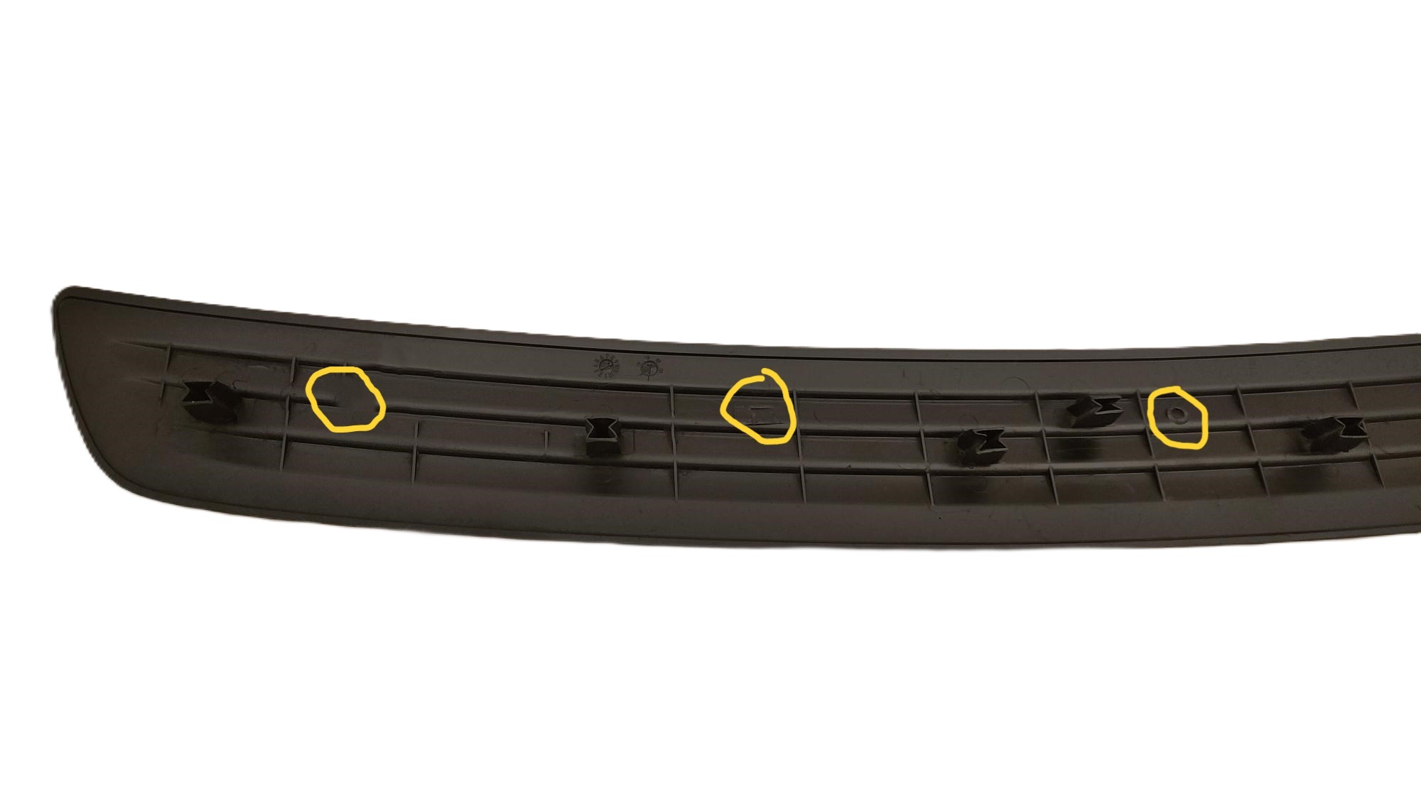 Moldura Defensa Dodge Delantera Ram 2500 2006-2008 USO detalles , esta pieza en la parte de atrás le faltan unos pequeños, sujetadores esta marcado en color amarillo, esto no impide su instalación, es una pieza usada, lista para instalarse, esperamos su compra, es de uso, con detalles va en la parte superior de la defensa delantera de la camioneta Ram, AUTOTRANSFORMERS REFACCIONARIA agradece su preferencia