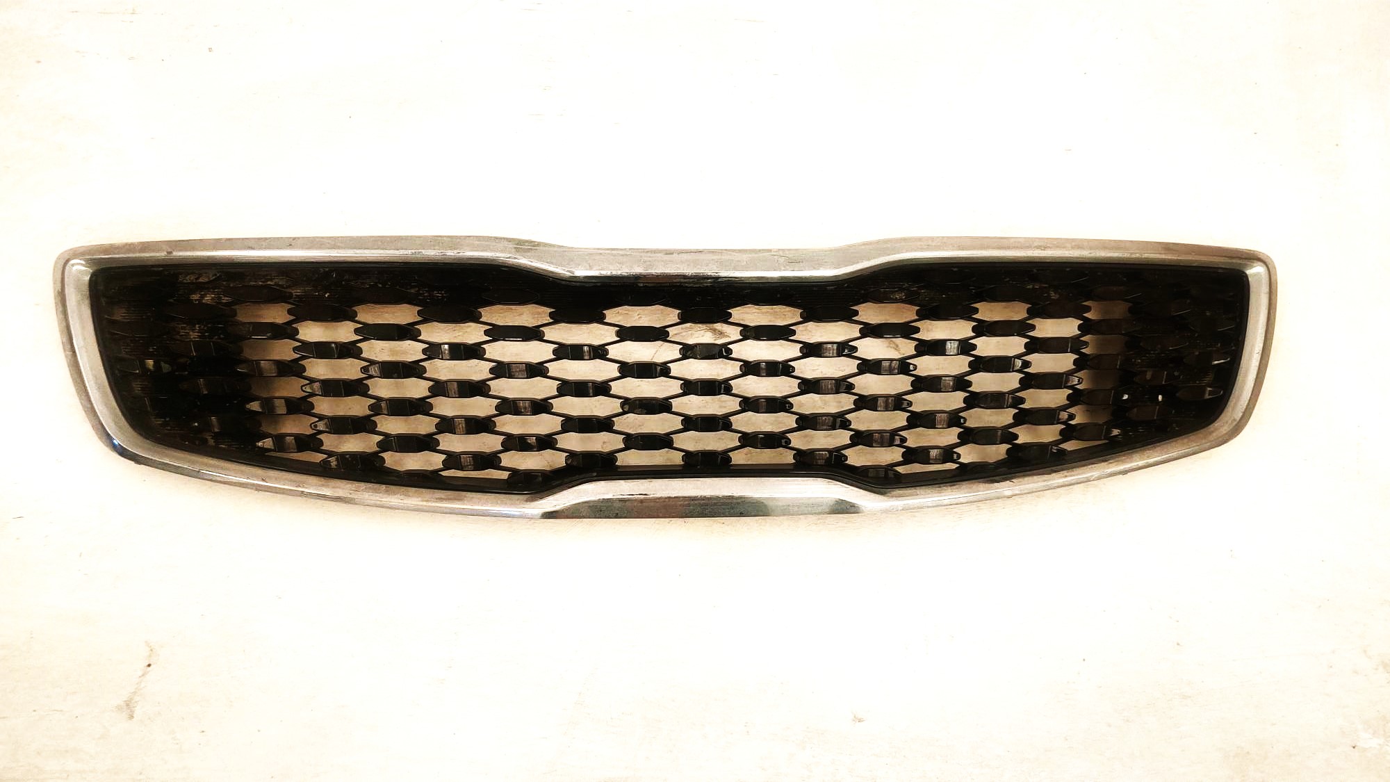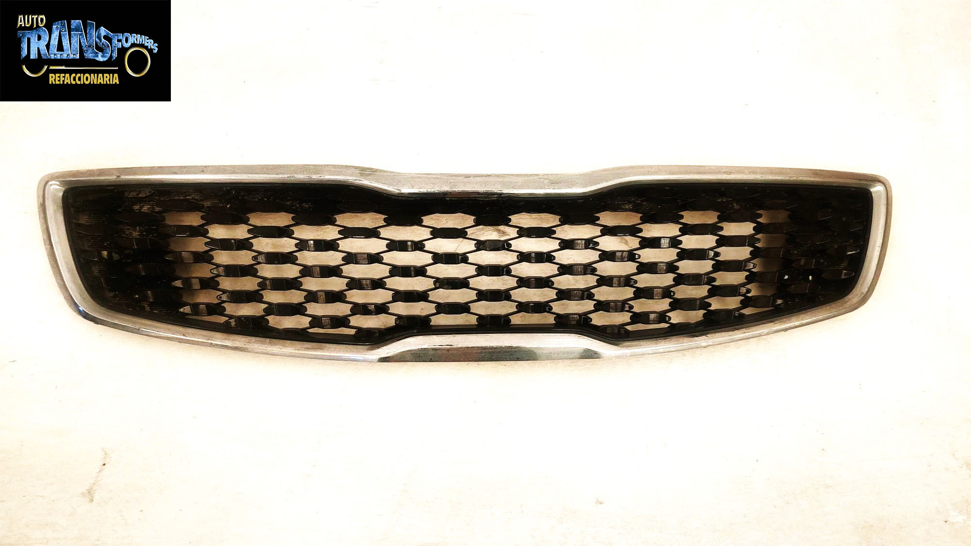 Parrilla Kia Forte 2017-2018 detalle cromo usada original, esta pieza tiene detalles en el cromo, esta un poco rayado y desgastado en la fotografías al rededor de la parrilla tiene desgastado por el uso, las bases traseras estas completas, esta lista parea instalarse, su precio es muy accesible por tener estas características, lo demás esta bien, esperamos su compra, AUTOTRANSFORMERS REFACCIONARIA agradece su preferencia